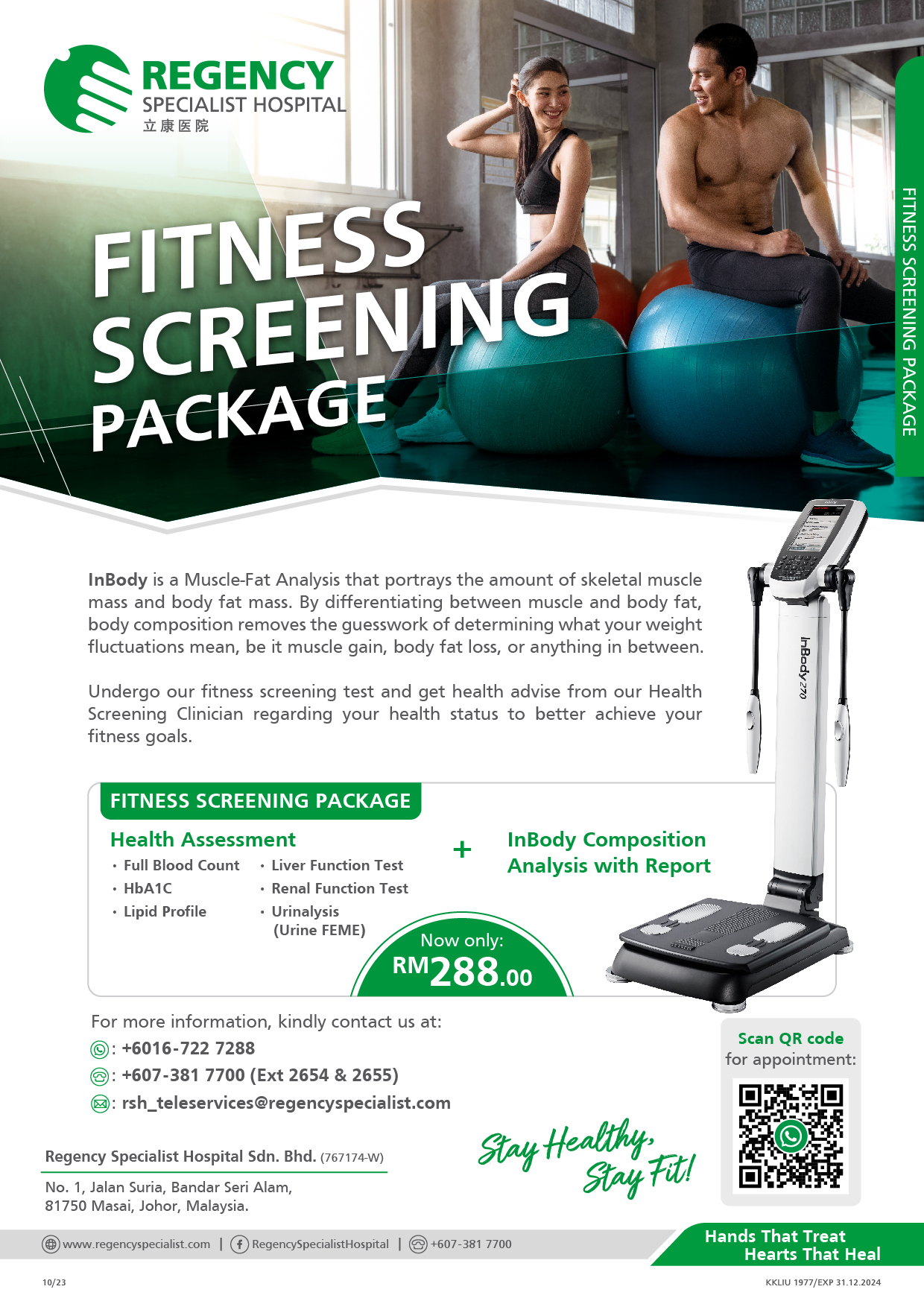 - InBody Composition Analysis with report1 Cardiac Screening Package (Treadmill ECG test, Full Blood Count, Lipid Profile, UEC)
